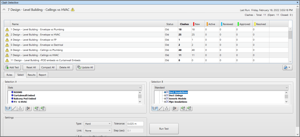 This workflow takes the Taking the design models and performing geometric interference tests to quickly find where elements of the building are interfering with each other.